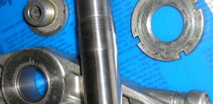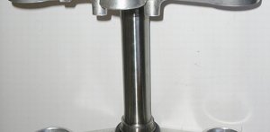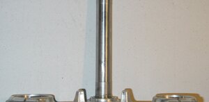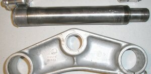 Il lavoro alla ciclistica è partito dallo sterzo per fare in modo di poter adattare le forcelle complete di una Kawasaki ZXR400. Per fare ciò è stato necessario rimuovere il perno di sterzo originale dalla piastra di sterzo inferiore Kawasaki, ricostruire quindi un nuovo perno di geometria pari a quella del componente originale della Cagiva Mito, e inserirlo per interferenza nella piastra di sterzo Kawasaki tramite l'interposizione di una boccola. A lato le immagini della piastra di sterzo prima e dopo l'intervento.