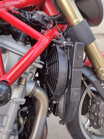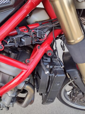 Acquistata nel 2016 questo splendido esemplare di stile italiano ha dovuto ricevere subito un po' di cure riguardanti i ben noti problemi di questo modello, ossia sostituzione della centralina servizi, nuovo mozzo ruota posteriore, nuove bobine e sostituzione del faro originale con uno più recente con lente in plastica anziché in vetro, che aveva il difetto di saltar via facilmente. Inoltre per ovviare ai problemi di raffreddamento alle andature lente ho sostituito la girante della pompa dell'acqua ed installato una ventola del radiatore più grande aggiungendo un pulsante a manubrio che mi permette di azionarla anche prima che scatti il termostato, cosa che aiuta quando si intravede già da lontano una coda con forti rallentamenti che in condizioni normali farebbero innalzare la temperatura di questo bolide fino all'ebollizione.