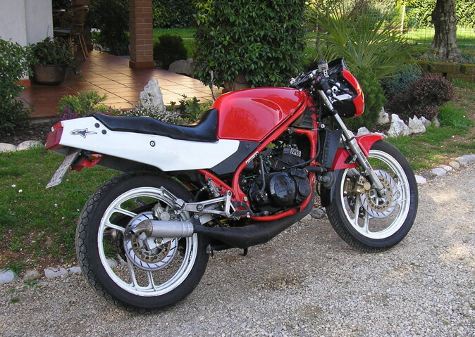 Acquistata a 16 anni, spendendo tutti i guadagni del lavoro estivo è stata la prima moto. Presa di seconda mano, quando già circolavano le versioni più nuove e performanti per me era già un sogno, . L'ho trattata come una regina, pulita e manutenuta con cura certosina. Non la lasciavo mai ferma in garage, né d'estate e neanche d'inverno, anche sotto la neve. Compagna di mille avventure anche lei a fine carriera non è stata risparmiata dalla bramosia dell'elaborazione, motore, assetto e carene sono stati rivisti in chiave più sportiva.