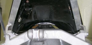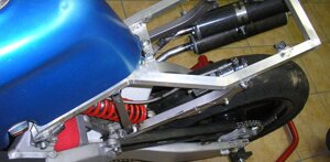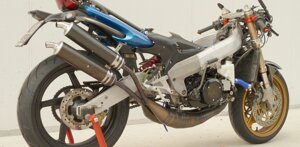 Le sovrastrutture hanno seguito una prima evoluzione destinata al solo uso in pista per poi consolidarsi in un uso più stradale. Inizialmente ho realizzato un telaietto monoposto posteriore completamente in alluminio, molto essenziale, pensato per poter installare un codino in vetroresina di un Yamaha R6 primo modello. Mentre all'anteriore ho utilizzato l'acciaio inox con tubi molto sottili e piastre tagliate al laser per poter sorreggere il cupolino, strumentazione e motorino delle valvole YPVS. La carena in questa prima versione era un modello in vetroresina di un Aprilia 125cc. Già in questa prima configurazione l'idea della livrea era decisa, quindi il serbatoio è stato completamente sverniciato, è stato installato un rubinetto più grande, derivato da una Yamaha R6, ed è stato verniciato con la nuova colorazione.