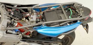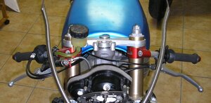 Faro e carenature derivano da una Apriia RS 250 di inizio anni '90. Le carene sono passate per le mani di un abile carrozziere per la verniciatura, sono poi stati installati anche i fari e le frecce ed il faro posteriore, di derivazione Kawasaki. L'impianto elettrico è stato poi rifatto completamente.