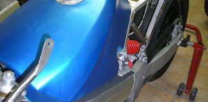 Successivamente ho deciso di cambiare impostazione al progetto ed invece di avere un mezzo per l'uso esclusivo in pista ho deciso di cambiare la sezione posteriore per avere una sella biposto. Quindi ho installato il retrotreno di una Cagiva Planet, modificando la sella e quindi rifoderandola, cogliendo l'occasione per dargli una nuova livrea. Anche l'anteriore è stato modificato con l'intento di avere una moto che potesse circolare anche su strada ho adattato un telaietto di una Aprilia RS250, modificando l'attacco al telaio e inserendo una base per l'installazione della strumentazione.