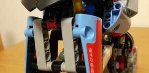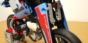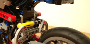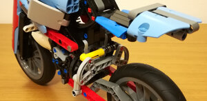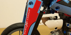 Per questo modello ho voluto ricreare quanto più fedelmente possibile le sospensioni anteriore e posteriore in modo che ricreassero le geometrie originarie e fossero realmente funzionanti. L'anteriore altro non è che una forcella con schema Hossack, mentre il posteriore utilizza uno schema a doppia attuazione di tipo push-rod.